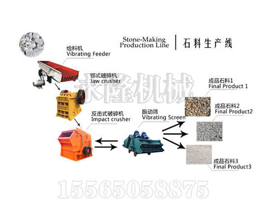 碎石主要由振動(dòng)給料機(jī)、顎式破碎機(jī)、反擊式破碎機(jī)、振動(dòng)篩、膠帶輸送機(jī)、集中電控等設(shè)備組成。